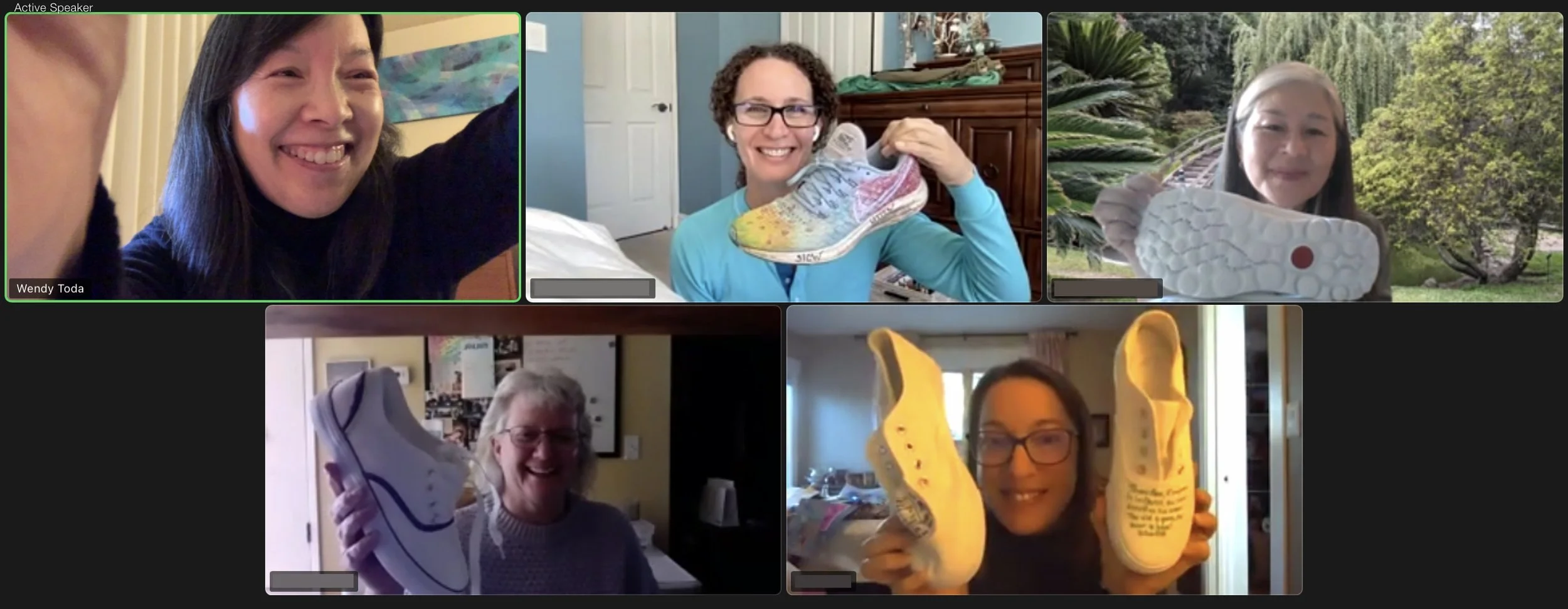Shoes were transformed into a playful symbol for how we would like to walk in this new year. We experimented with and expressed how we might walk, stand, and aim our whole selves into whatever this new year might bring.