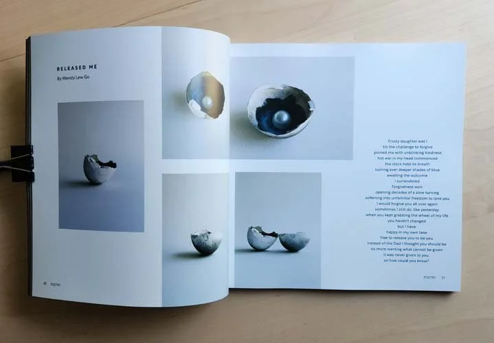 Most of my work here was created many months ago. The timing of this release was a sweet gift in the midst of my sorrow. It's always a delightful surprise to see how my work is presented - and a great joy to celebrate and savor what other contributors have created as well. It's a beautiful respite.